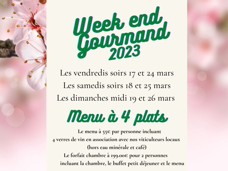 La chambre, le petit déjeuner buffet le menu Week-end gourmand